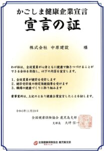 登録等 | かごしま子育て応援企業登録 鹿児島県SDGs登録事業所 健康経営優良法人2025 中小規模法人部門 かごしま健康企業宣言 鹿児島市健康づくりパートナー 鹿児島市消防局 消防団協力事業所 鹿児島市環境管理事業所 鹿児島市安心安全協力事業所 協会けんぽ「トク得応援隊」 |